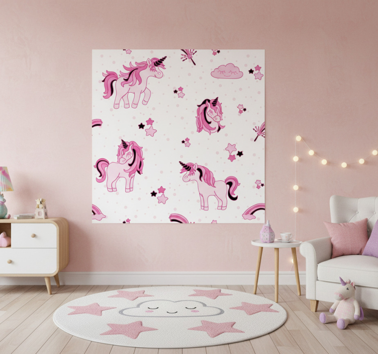 Poster dormitorio infantil mundo de unicornios doodle