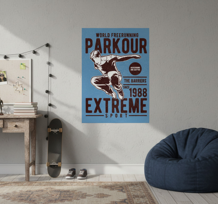 Transforma cualquier espacio con el Poster habitación juvenil parkour vintage, una opción perfecta para quienes buscan un toque único y emocionante en su decoración. Este poster no solo embellece la habitación, sino que también inspira a los jóvenes a soñar y a moverse. Su diseño atractivo y moderno añade personalidad a las paredes, convirtiéndolas en un lienzo de expresión y estilo. ¡Déjate llevar por la energía del parkour y crea un ambiente motivador!