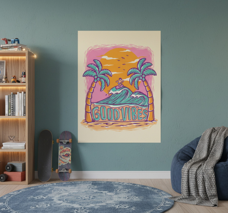 El Poster juvenil buenas vibras surf es el complemento ideal para tu decoración, ya que transforma cualquier habitación en un refugio de buenas energías. Su diseño fresco y dinámico inspira a vivir la vida al máximo, recordándote la libertad del surf y la belleza de la naturaleza. Añadir este cartel a tus paredes no solo embellece el espacio, sino que también te llena de motivación y buenas vibras cada día.