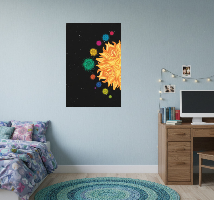 Transforma cualquier habitación con el Poster juvenil mandalas del sistema solar. Esta pieza única no solo es un elemento decorativo, sino una fuente de inspiración y reflexión. Ideal para habitaciones juveniles, su diseño cautivador estimula la imaginación y el deseo de explorar el mundo y más allá. Al colgarlo en tu pared, no solo estás decorando, sino creando un ambiente que fomenta la creatividad y el aprendizaje. ¡Haz que cada día sea una aventura galáctica!