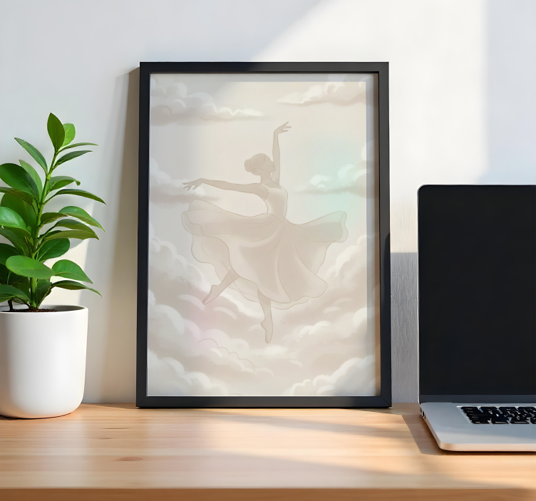 Referencia: G1132Descubre la magia de la danza y la fantasía con nuestro Poster minimalista persona danzando en las nubes. Esta hermosa ilustración presenta a una bailarina que parece flotar entre suaves nubes, creando una atmósfera etérea y soñadora que cautivará cualquier espacio. Su diseño minimalista combina elegancia y simplicidad, permitiendo que la belleza del arte se exprese sin distracciones.