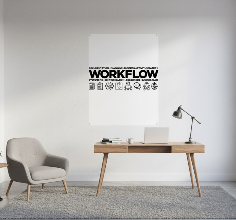 Incorporar el Poster oficina flujo de trabajo en tu espacio es una decisión inteligente y creativa. Este elemento decorativo no solo añade un toque estético, sino que también promueve un ambiente de trabajo más productivo y eficiente. La visualización del flujo de trabajo estimula la creatividad y la colaboración, transformando la rutina diaria en una experiencia más amena y motivadora. ¡Haz de tu oficina un lugar donde cada día sea un nuevo desafío!