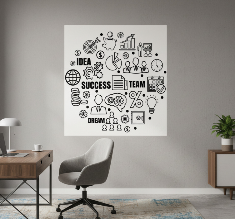 Referencia: G696Transforma tu espacio de trabajo con el Poster oficina ideograma empresarial, una pieza decorativa que combina un diseño innovador con un acabado semimate sin reflejos. Esta lámina, con un gramaje de 180g/m2, garantiza una alta intensidad de color que hará que tus ideas brillen en cada rincón de la oficina. Su estilo moderno y atractivo se adapta a cualquier ambiente, creando una atmósfera inspiradora y productiva.