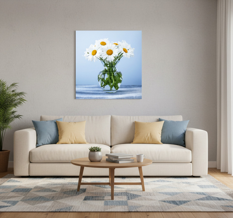 Poster salón flores de margarita en macetas de vidrio