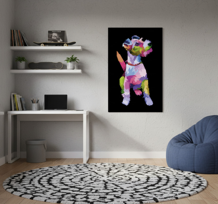 El Poster salón zorro terrier geométrico es más que una simple decoración; es una invitación a la creatividad y a la alegría en tu hogar. Este poster no solo embellece el ambiente, sino que también refleja tu personalidad y estilo único. Ideal para cualquier salón, su diseño geométrico aporta un toque contemporáneo que captará la atención de todos. ¡Deja que tus espacios hablen de ti!