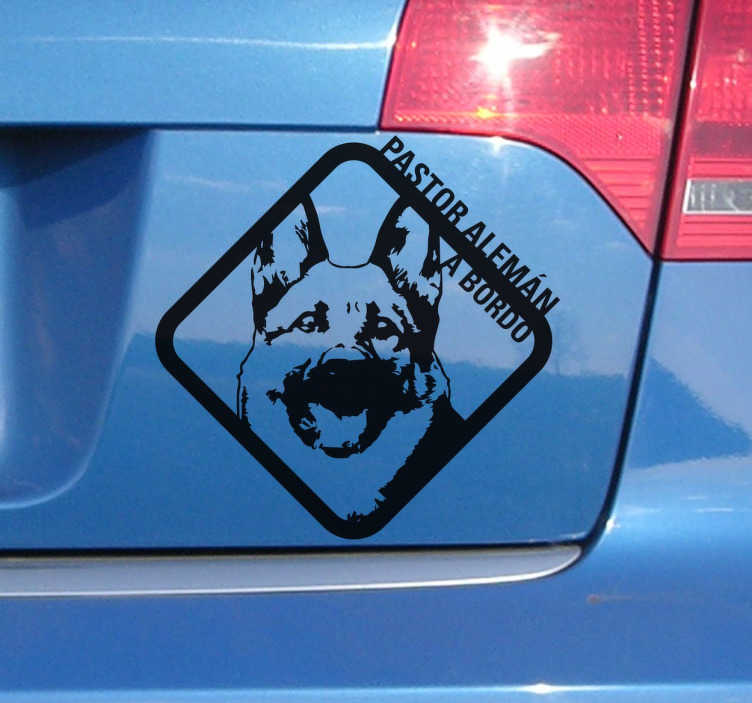 Pegatina moderna con un mensaje sencillo y claro que servirá para que todo el mundo tenga en cuenta que tu perro está en el coche y así conduzcan con precaución.