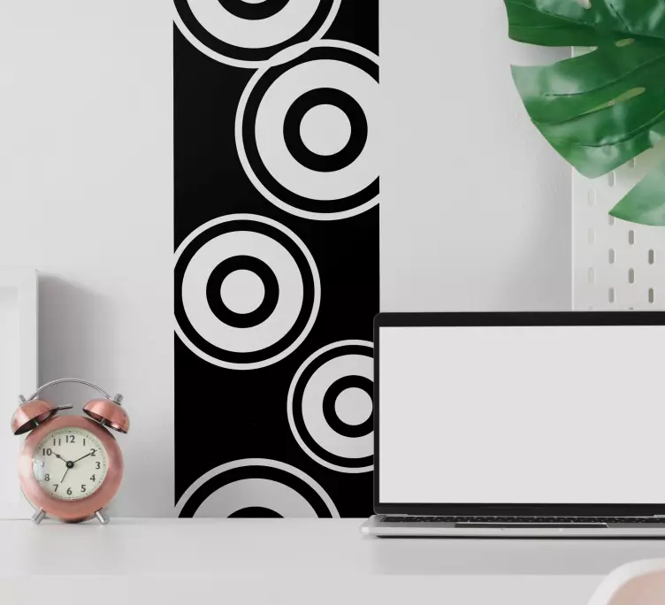 Personaliza tus paredes con esta hermosa cenefa decorativa monocolor retro con círculos. Este adhesivo es perfecto para darle un toque único y original a cualquier habitación de tu hogar.
