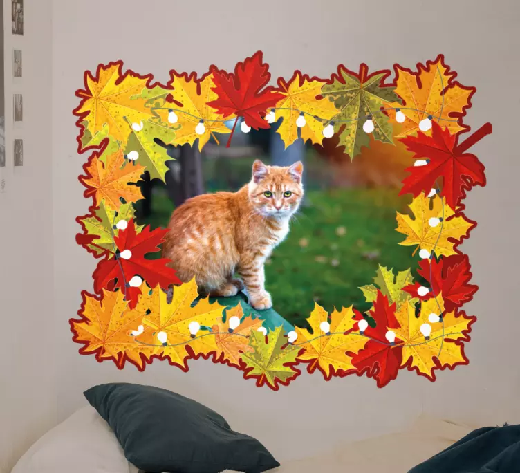 Descubre la magia del Marco adhesivo gato rodeado de hojas, una lámina decorativa que combina la belleza de la naturaleza con la ternura de los gatos. Su diseño otoñal, lleno de hojas vibrantes y un adorable gato en el centro, ofrece un toque vistoso y acogedor a cualquier espacio. Perfecto para quienes aman los animales y desean dar vida a sus fotografías personalizadas, este marco es ideal para capturar momentos especiales en un entorno natural.