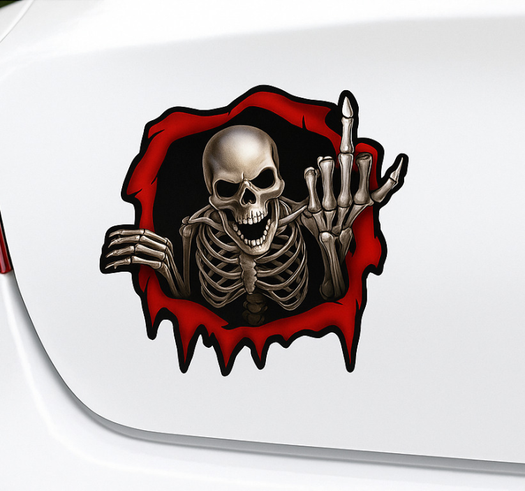 La Pegatina coche esqueleto aterrador escapando no solo es un elemento decorativo, sino que también es una forma de expresar tu personalidad y estilo. Imagina conducir por la ciudad y ver las miradas sorprendidas de otros conductores. Este diseño es perfecto para quienes buscan un toque original y divertido en su vehículo. Con esta pegatina, no solo decoras tu coche, sino que también haces una declaración de intenciones. ¡Dale vida a tu coche y sé el centro de atención!