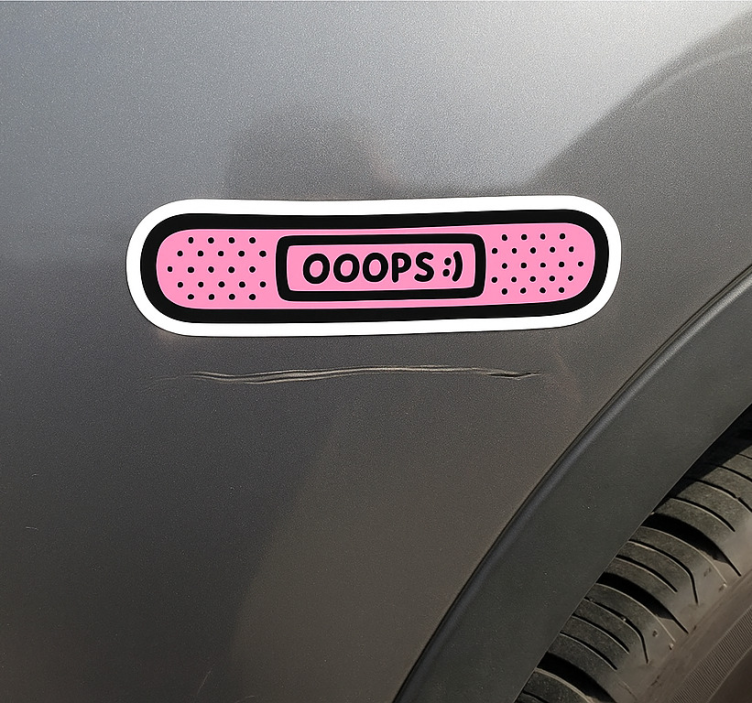 La Pegatina coche tirita rosa "oops" es ideal para aquellos que buscan dar un toque personal a su vehículo. Con su diseño atractivo, no solo embellece tu coche, sino que también refleja tu personalidad. Dale vida a tu automóvil y sorprende a todos con un detalle que hará sonreír a los que te rodean. ¡Es la forma perfecta de destacar en la carretera!