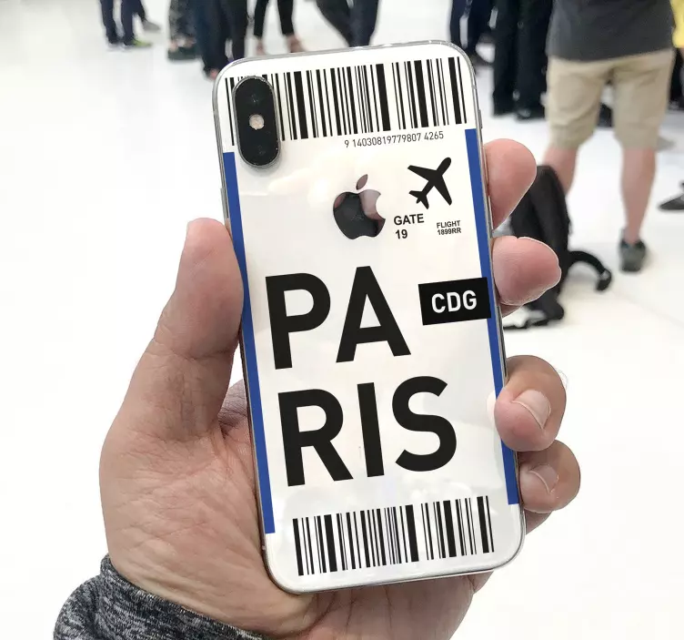 ¡Descubre nuestra Pegatina iPhone billete de avión París! Este encantador diseño gráfico captura la esencia parisina con un avión sobre un boleto que evoca la emoción de un viaje a la mágica ciudad de París. Con detalles como un código de barras, este vinilo no solo es una declaración de estilo sino que también refleja tu amor por los moviles y la aventura. Ideal para personalizar tu teléfono, este diseño es perfecto para quienes sueñan con sus próximas escapadas.