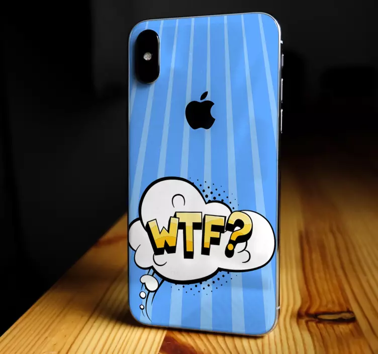 Referencia: A48535Un diseño vibrante presenta una burbuja de pensamiento con el texto 'WTF?'. La tipografía juguetona resalta contra un fondo azul claro adornado con rayas verticales, creando una estética moderna que puede realzar la expresión personal.