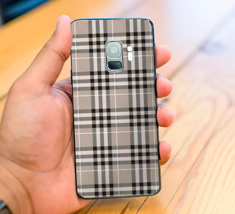 Transforma tu móvil Samsung con nuestra Pegatina samsung estilo motivo cuadros. Este adhesivo destaca por su diseño gráfico que combina un elegante patrón de tartán en tonos beige y gris, aportando un toque sofisticado a tu dispositivo. Con su acabado en tela, este estampado no solo decora sino que también protege tu móvil de arañazos y manchas, prolongando su vida útil. ¡Es la forma perfecta de personalizar tu teléfono y destacar entre la multitud!