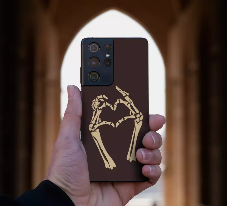 La Pegatina Samsung gesto de corazón esquelético es la opción perfecta para quienes desean destacar su personalidad y amor por el diseño. Su atractivo visual y su simbolismo hacen que cada vez que mires tu móvil, sientas una conexión especial. Es más que un simple adhesivo; es una declaración de estilo que transforma tu dispositivo en una obra de arte.