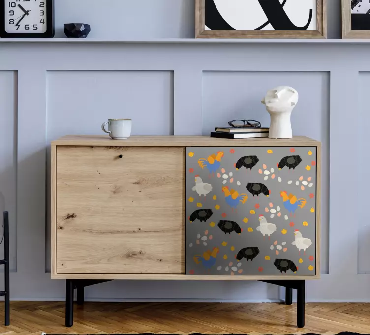 Descubre el encantador Vinilo animal de granja patrón de animales de granja, un diseño que evoca la alegría de la vida rural. Este mueble decorativo presenta un divertido patrón de animales como pollos y otros animales de granja, creando un ambiente juguetón y acogedor. Ideal para cualquier habitación, su estampado vistoso le dará un toque único a tus muebles, convirtiéndolos en verdaderas piezas de conversación.
