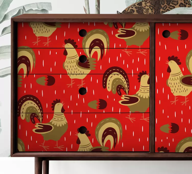 El vinilo animal de granja patrón de gallo juguetón es una pieza decorativa que destaca por su vibrante diseño. Con ilustraciones de gallos en un color rojo vistoso, este estampado capta la esencia de la vida en la granja. Ideal para dar un toque alegre y original a cualquier mueble, hará que tus espacios se sientan más cálidos y acogedores.