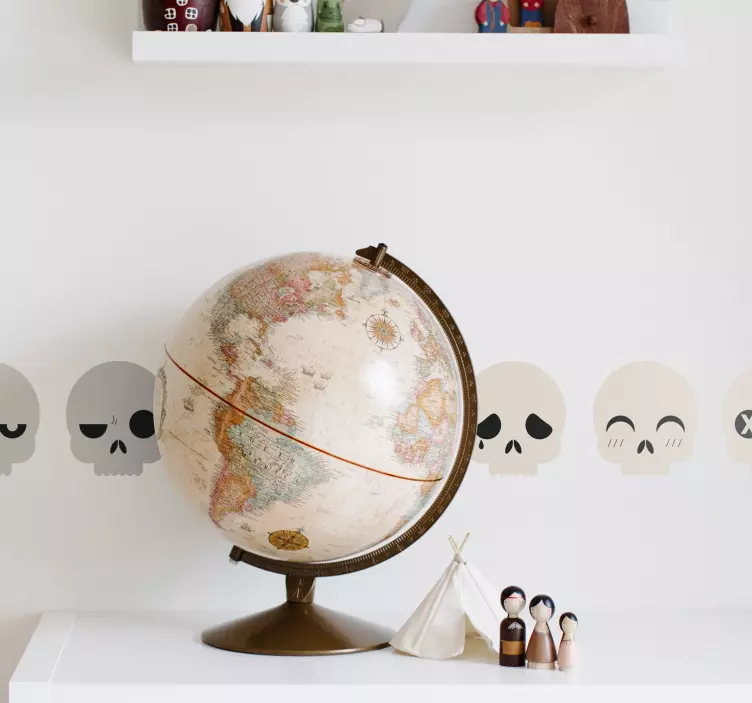 Descubre un mundo de creatividad con nuestro Vinilo caras de calaveras caprichosas, un diseño que combina la esencia de los piratas y la diversión de calaveras juguetonas. Este vinilo decorativo presenta un estilo expresivo, lleno de caracteres únicos que añaden un toque decorativo a cualquier espacio. Su encantadora cenefa y frontera lo hacen perfecto para quienes buscan un elemento visual que despierte la imaginación.