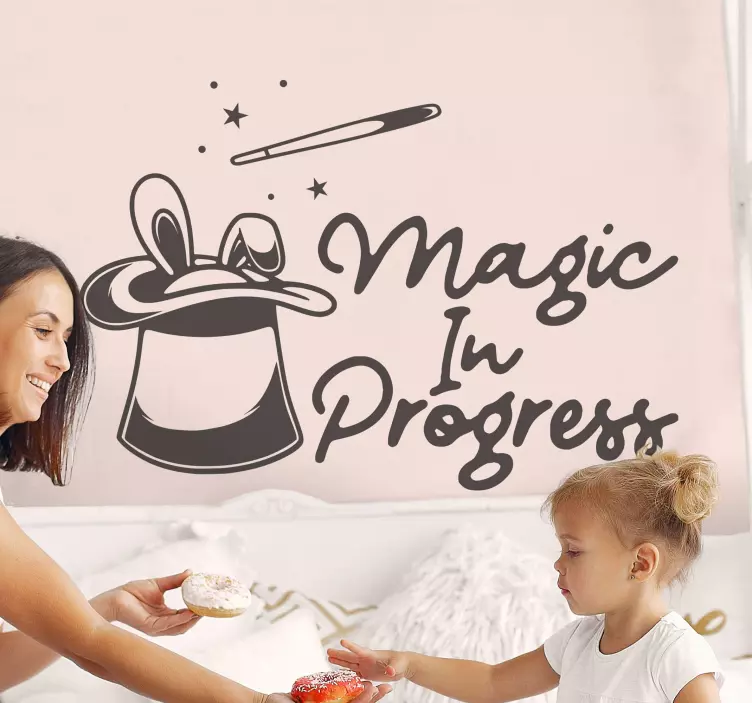 Descubre la magia y el progreso con nuestro Vinilo circo magia en progreso! Este diseño encantador presenta una caligrafía juguetona que invita a los niños a soñar. Un sombrero de mago, un conejito travieso y estrellas brillantes se combinan en una composición divertida que iluminará cualquier espacio. ¡Perfecto para darle un toque especial a la habitación de los pequeños!