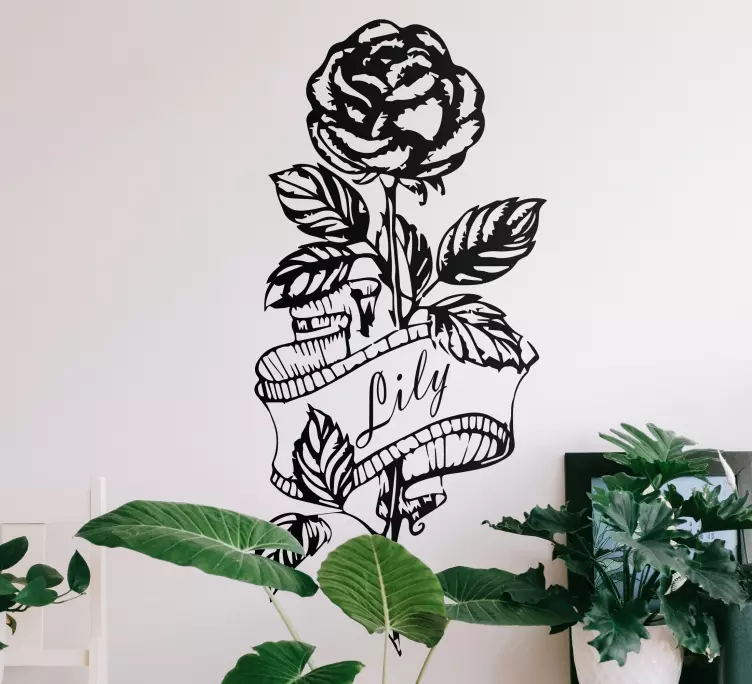 Referencia: A29495Vinilo de flor Dibujo de rosa con cinta