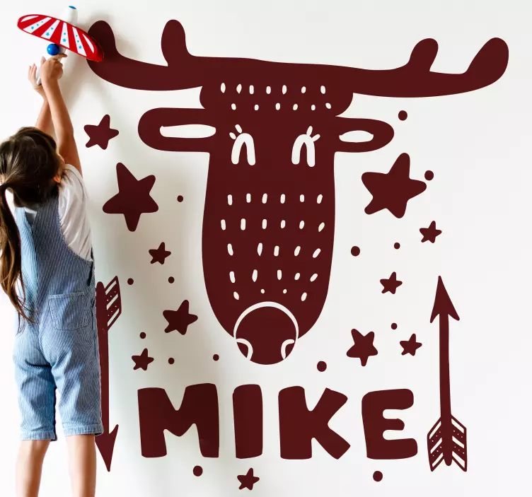 Descubre la magia del vinilo decorativo personalizable cara de ciervo caprichosa, un diseño encantador que combina elementos nórdicos con un reno juguetón bajo un cielo estrellado. Este vinilo no solo es una pieza decorativa, sino una forma de personalizar el espacio de tus niños, convirtiendo cualquier habitación en un lugar lleno de fantasía. Con su flecha que apunta hacia la aventura y la opción de incluir el nombre de tu pequeño, este ciervo caprichoso se transformará en el protagonista de su mundo.