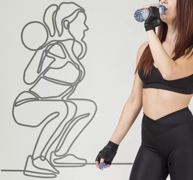 Este vinilo deporte pose de fitness dinámico presenta un diseño vibrante y estilizado que captura la esencia del movimiento y la fuerza femenina. Con su arte lineal que representa a una mujer en plena acción en el gimnasio, este dibujo inspira a adoptar un estilo de vida saludable y activo. La imagen, que muestra a una atleta en posición de cuclillas, simboliza el compromiso con el ejercicio y la aptitud física, convirtiéndolo en un elemento decorativo ideal para cualquier espacio dedicado al deporte.