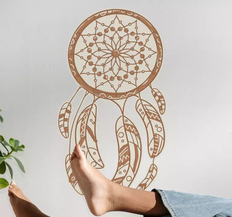 Descubre la magia del vinilo diseño intrincado de atrapasueños, donde cada trazo de su artístico diseño en tonos beige se entrelaza con plumas que evocan un estilo bohemio y espiritual. Este intrincado diseño no solo es una pieza decorativa, sino una expresión visual que transformará tu hogar en un refugio lleno de buenas vibras y sueños cumplidos.