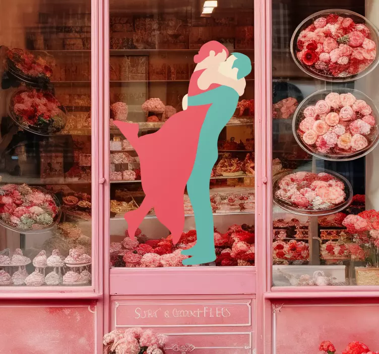 La instalación del Vinilo escaparate beso de pareja es rápida y sencilla. Solo necesitas asegurarte de que la superficie esté limpia y seca, y podrás aplicarlo sin complicaciones. Disfruta de un resultado espectacular en minutos y transforma tu espacio con esta hermosa ilustración.