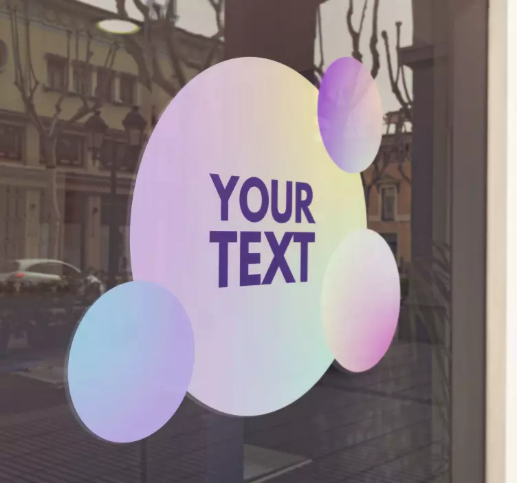 Descubre nuestro Vinilo escaparate círculos de texto personalizables, una obra maestra gráfica que combina un hermoso degradado y un estilo líquido, creando un efecto abstracto y geométrico que transformará tu escaparate en un espacio moderno y vanguardista. Este diseño vistoso incorpora círculos que permiten incluir texto personalizado, dándole un toque único y personal a tu decoración.