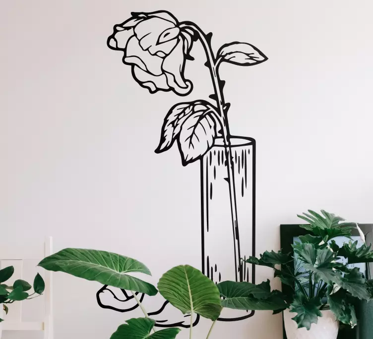 El vinilo flores composición de rosas elegantes es una pieza decorativa que evoca la belleza natural a través de un diseño gráfico cautivador. Con un acabado que simula la transparencia del vidrio, este dibujo floral de rosas se presenta en un jarrón minimalista, ideal para cualquier interior. Las flores secas, en perfecta armonía, aportan un toque de sofisticación y frescura a tu espacio.