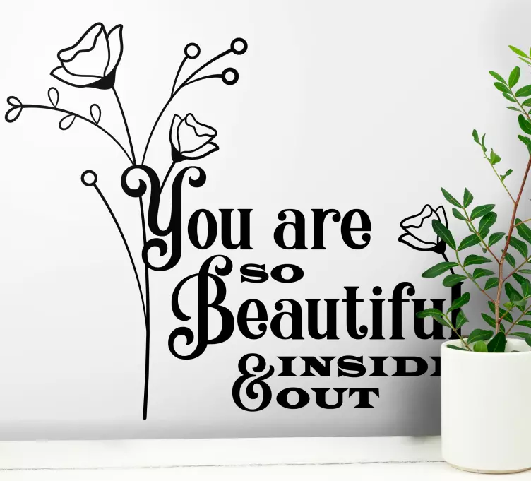 Descubre nuestro Vinilo frase célebre eres tan hermosa por dentro, un diseño que irradia belleza y positividad. Este vinilo presenta un hermoso fondo floral que complementa un texto inspirador, brindando un mensaje positivo que iluminará cualquier espacio. Con flores vibrantes y una tipografía encantadora, esta cita se convierte en una obra de arte que celebra la belleza interior y la inspiración. ¡Perfecto para adornar tu hogar!