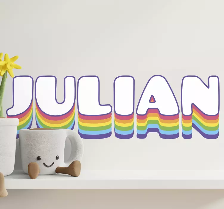 Referencia: A47266Este diseño de nombre colorido presenta un efecto arcoíris juguetón y vibrante en todas las letras. Cada carácter integra sin problemas el espectro, creando una atmósfera acogedora. Ideal para personalizar el espacio de un niño, añade un toque alegre mientras permite la personalización para reflejar la individualidad.