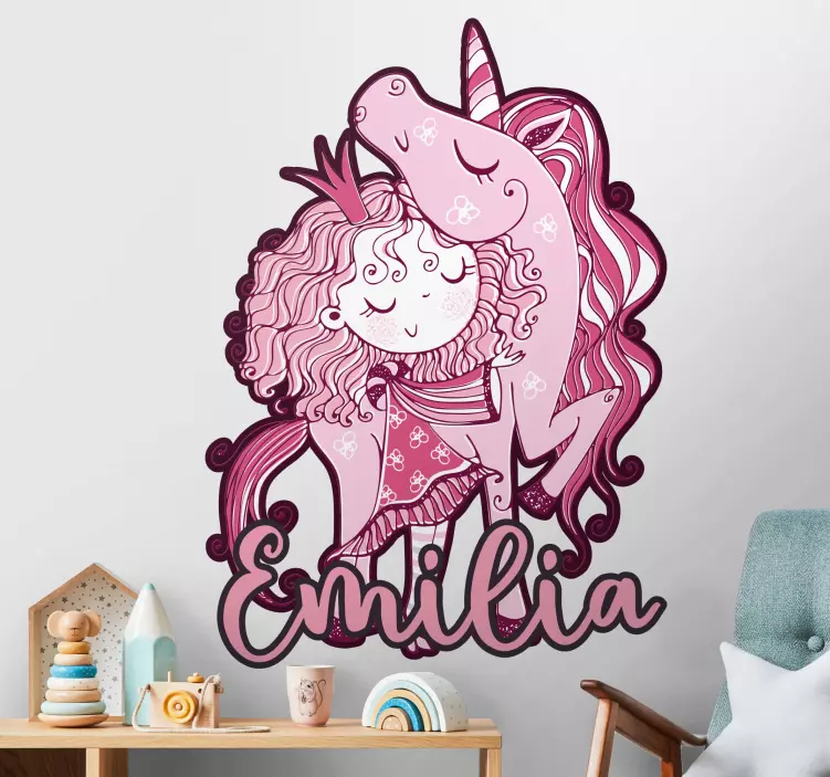 Vinilo infantil abrazo de unicornio rosa