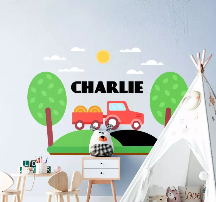 El vinilo infantil escena de camiones personalizados es la elección perfecta para transformar la habitación de los más pequeños en un espacio lleno de magia y aventura. Imagina cómo brillarán los ojos de tu niño al ver su propio tractor y camiones en la pared, rodeados de un hermoso paisaje de naturaleza. Este vinilo no solo decora, sino que también inspira y estimula la imaginación, convirtiendo cada rincón en un lugar de juego y descubrimiento. ¡Haz que su habitación sea un reflejo de su mundo de sueños!