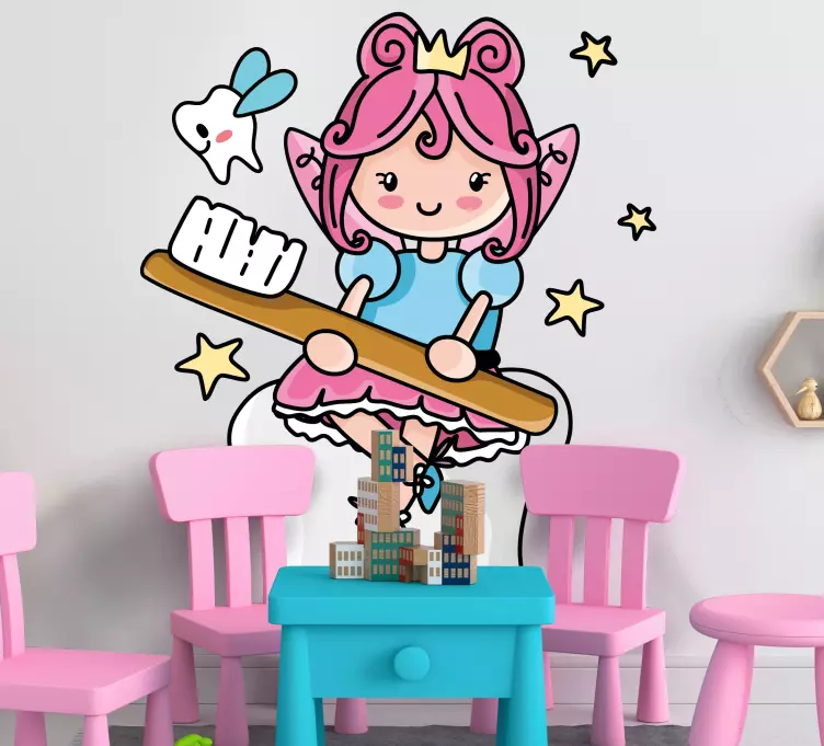 Descubre la magia de la vinilo infantil hada de los dientes, un diseño encantador que captura la esencia de la fantasía. Este dibujo juguetón presenta a una hada de los dientes sonriente, acompañada de un adorable cepillo de dientes. Perfecto para la habitación de niños, su tonalidad rosa y rosado añade un toque caprichoso y lindo que transformará cualquier espacio en un mundo de sueños y alegría.