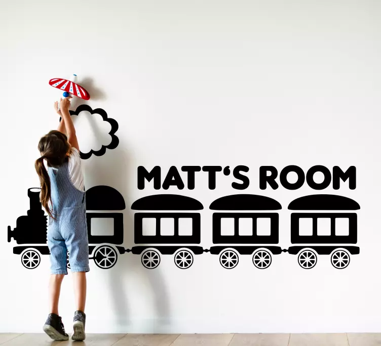 Referencia: A48715Un tema de tren caprichoso diseñado para el espacio de un niño, permitiendo la personalización de nombres. Este diseño encantador presenta una locomotora y vagones, creando una atmósfera lúdica e imaginativa en cualquier habitación, haciéndolo perfecto para pequeños soñadores.