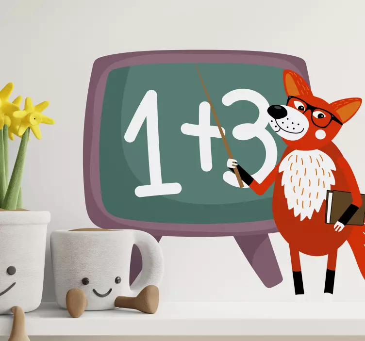 Descubre el encantador vinilo infantil zorro juguetón educativo, una lámina decorativa que transforma cualquier habitación de los niños en un lugar lleno de magia y aprendizaje. Con un diseño que combina la estética de cómic y la esencia de un zorro en su rol de profesor, este adorable personaje enseña Matemáticas de una manera divertida. Ideal para estimular la imaginación de los más pequeños, este animal salvaje se convierte en un compañero interactivo que hace del estudio una aventura. Los dibujos animados y sus caracteres únicos atraerán la atención de todos los niños, creando un ambiente educativo y alegre.