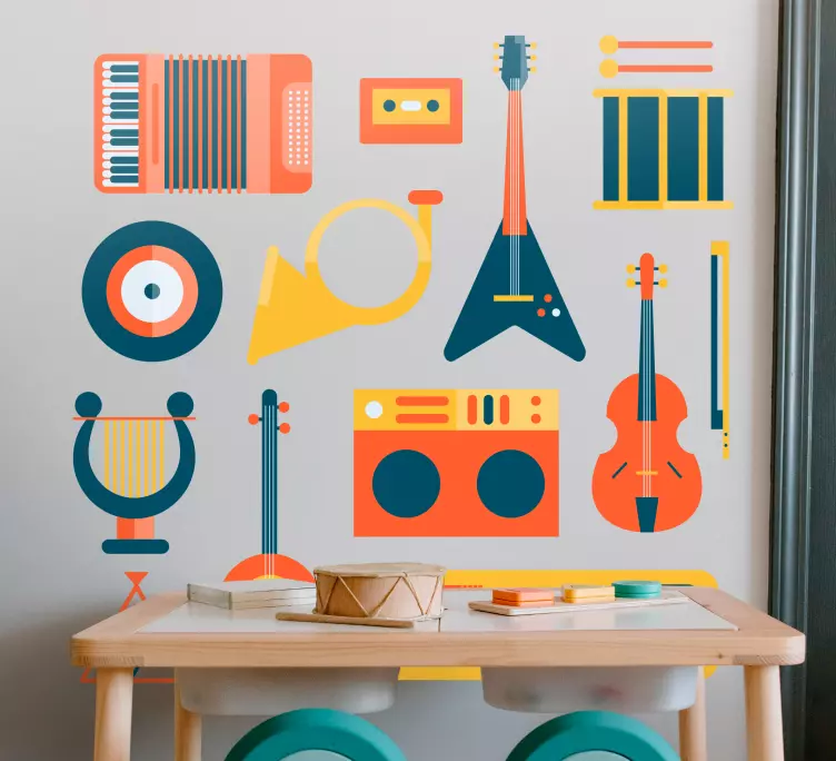 Descubre la magia de la música con nuestro vinilo música instrumentos musicales vibrantes. Este diseño gráfico es una explosión de color y vida, ideal para quienes buscan un toque decorativo y vistoso en sus espacios. Con elementos que evocan la esencia del Arte musical, este vinilo es perfecto para cualquier amante de la música que desea colocar un pedazo de su pasión en su hogar.