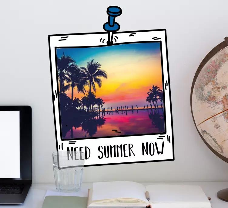 Descubre el Vinilo naturaleza marco paisaje de verano, una hermosa representación gráfica que evoca vibras de verano. Este diseño captura la esencia de un atardecer en la playa, enmarcado como una polaroid que destaca palmeras y un mensaje que invita a disfrutar el momento. La fotografía es una explosión de color, donde el verano cobra vida en cada rincón.