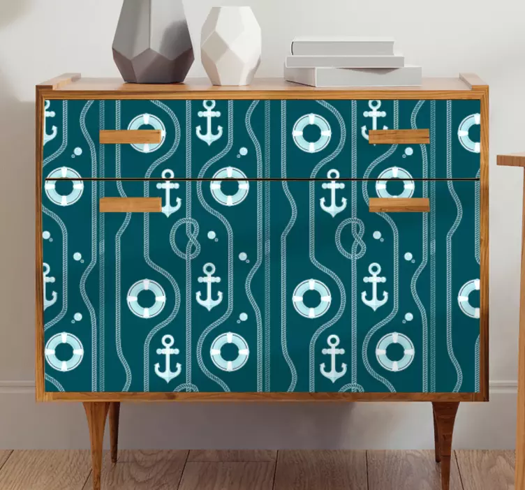 Descubre el encanto del mar en tu hogar con nuestro vinilo ornamental anclas y boyas. Este diseño gráfico presenta una ilustración náutica que combina anclas y boyas, creando un patrón marítimo que capta la esencia de los marineros. Con una paleta de colores en azul y blanco, este vinilo ornamental agrega un toque fresco y alegre a cualquier mueble o espacio en tu hogar. ¡Transforma tus muebles en verdaderas obras de arte decorativas!