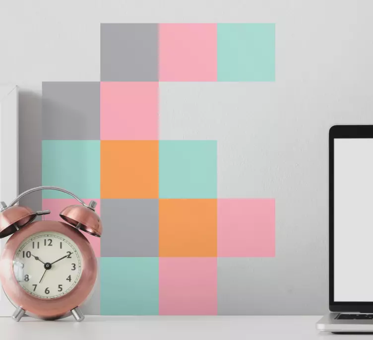 Referencia: A53373Una disposición vibrante de formas geométricas, con suaves colores pastel en una configuración juguetona. Este diseño realza cualquier espacio con su aspecto llamativo, combinando un estilo contemporáneo con un toque artístico. La mezcla de cuadrados en diferentes tonos crea una atmósfera animada, perfecta para añadir interés a una pared.