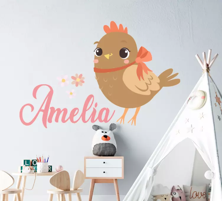 Descubre la magia de la ilustración con nuestro vinilo pájaro diseño de ave adorable. Este encantador vinilo presenta un pájaro divertido y caprichoso, ideal para personalizar el espacio de tus niños. Su diseño personalizable te permite agregar un nombre, haciendo que cada pieza sea única y especial. Con su estilo alegre, este vinilo transformará cualquier habitación en un lugar lleno de vida y color.