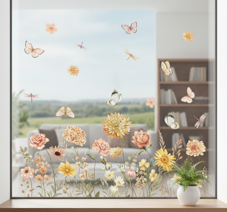 Aplicar el vinilo para cristal ventana pradera de flores con mariposas es muy sencillo. Solo necesitas asegurarte de que la superficie esté limpia y seca, y luego colocar el vinilo con cuidado, alisando cualquier burbuja con una espátula si lo deseas. ¡Verás cómo transforma tu ventana al instante!