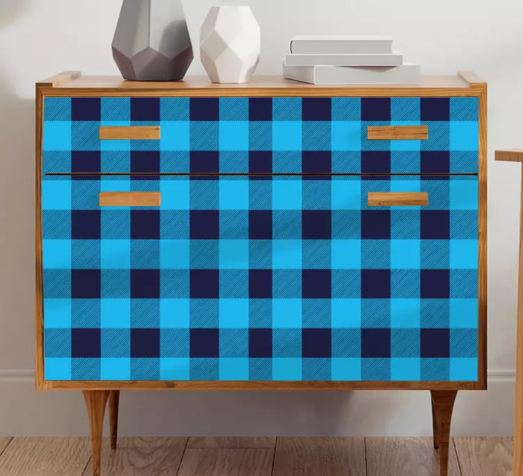 Descubre el Vinilo para mueble diseño de cuadros azules, una hermosa opción para transformar tus muebles con su atractivo gráfico. Este diseño presenta un encantador patrón de cuadros en tonos azules que evocan el estilo tartán, ideal para quienes buscan un toque geométrico y moderno en su decoración. Con este estampado, tus muebles se volverán el centro de atención en cualquier espacio, brindando calidez y un aire renovado a tu hogar.