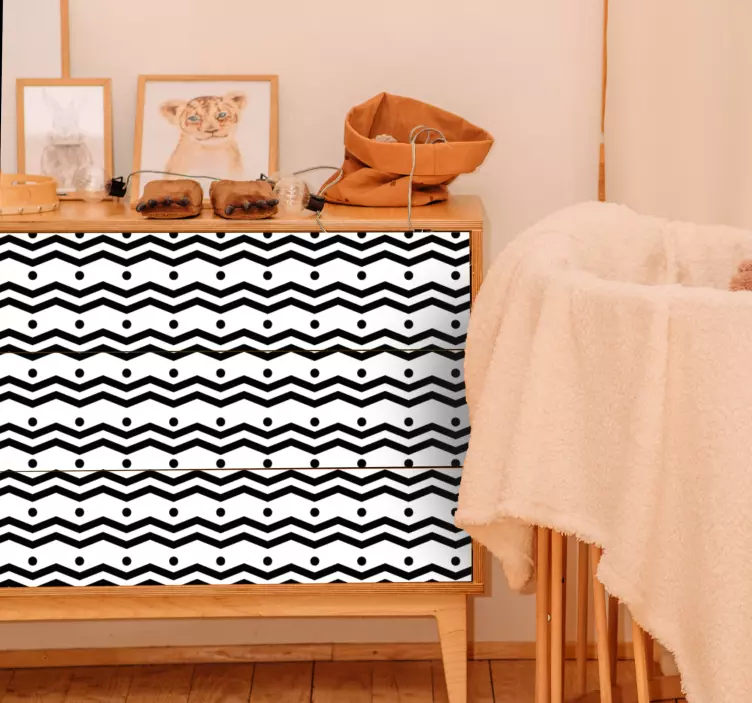 Descubre el estilo único de nuestro Vinilo para mueble estilo chevron, que presenta un elegante diseño en blanco y negro. Con un patrón geométrico en zigzag, este vinilo agrega un toque moderno y sofisticado a cualquier mueble. Las líneas definidas y el estampado atractivo transformarán tus muebles en verdaderas obras de arte, brindando un aire contemporáneo a tu hogar.