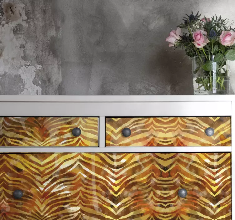 Descubre el Vinilo para mueble patrón zigzag abstracto, una pieza única que transforma cualquier espacio. Su diseño gráfico, inspirado en la acuarela, presenta un elegante patrón zigzag en colores cálidos que aportan un toque decorativo y geométrico a tus muebles. Este estampado abstracto es perfecto para quienes buscan un estilo moderno y vibrante.