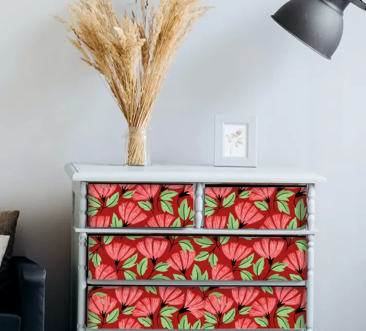 Transforma tus espacios con el Vinilo para mueble superposición gráfica floral, un diseño que captura la esencia de la naturaleza. Con un hermoso patrón floral, lleno de hojas y flores vibrantes, esta ilustración resalta la belleza de cada rincón. Perfecto para quienes desean agregar un toque de frescura y vitalidad en su diseño de interiores, este estampado es ideal para los amantes de la naturaleza que buscan un ambiente acogedor y lleno de vida.
