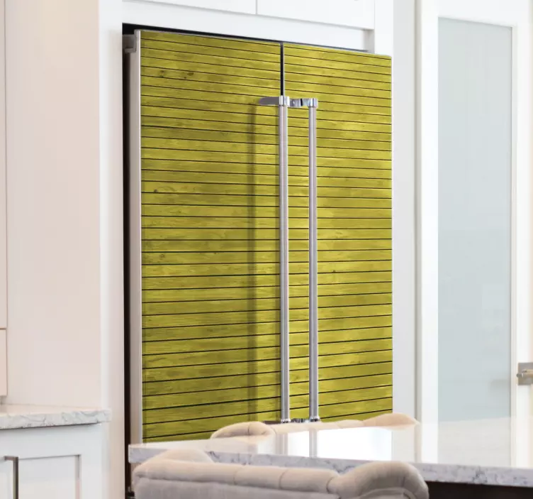 Transforma tu refrigerador en una obra de arte con nuestro vinilo para nevera efecto tablones de madera. Este diseño simula una hermosa textura de madera con tonos verdes y amarillos, que le dará un toque cálido y acogedor a tu cocina. Con una apariencia de tablones de madera auténtica, cada vez que abres la nevera, sentirás que estás en un espacio lleno de estilo y personalidad.