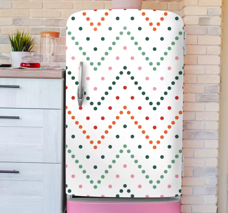 El vinilo para nevera motivo chevron vibrante es una explosión de color y modernidad que transformará tu refrigerador en una obra de arte. Con un diseño que combina punto, topos, y zig-zag, este vinilo multicolor es perfecto para aquellos que buscan darle un toque vistoso a su nevera. Los lunares y el zigzag se entrelazan en un patrón dinámico que atraerá todas las miradas, convirtiendo tu frigorífico en el centro de atención de la cocina.