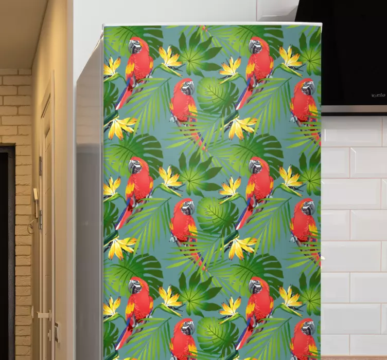 Vinilo para nevera tema de loro tropical