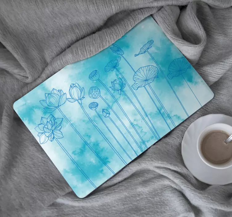 Descubre la belleza del vinilo para portátil composición de flor de loto, un diseño que evoca la serenidad y la conexión con la naturaleza. Con tonos azules y un estilo de acuarela, esta flor de loto resplandece en tu ordenador portátil, aportando un toque floral y vibrante que transforma tu espacio digital en un verdadero oasis de calma y creatividad.